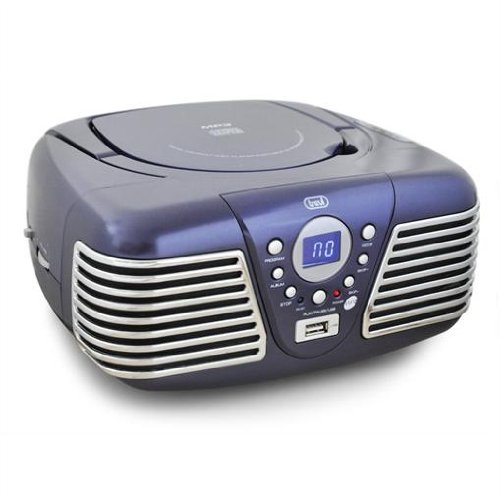 The Trevi Vintage Boombox is a compact micro stereo system for mobile use. It features a built-in radio and an MP3-capable CD player.