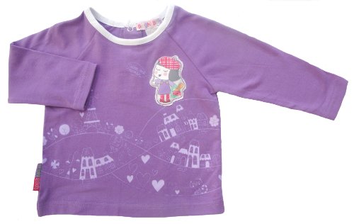 This raglan style tee is inspired by the streets of Paris. It has a large print across the hem with a puffy appliqué little girl. This tee is made from soft stretch jersey with contrast coloured neck binding.