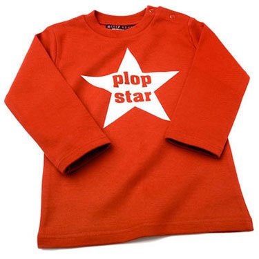 This childrens tshirt features a star accompanied by the slogan 'plop star'. The perfect choice for budding pop stars! Available in a choice of colours for boys and girls