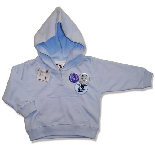 A Dirty Fingers Hooded Sweatshirt with Kangaroo pocket and Placket detail at neck. 280gsm, 100% cotton, single jersey lined hood. Printed with a cool, 3 Badge Design that features slogans and logos from our great DF range. Available in Pale Blue, Pink and Navy Blue