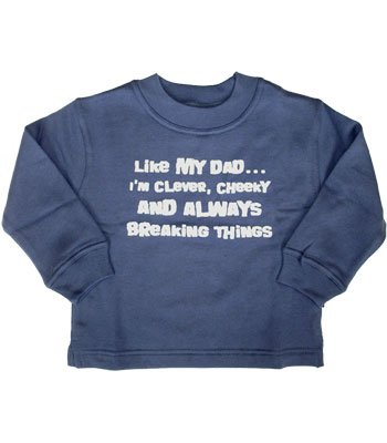 Sweat blue 2-3 yrs 'Like my dad, I'm clever, cheeky and always breaking things'